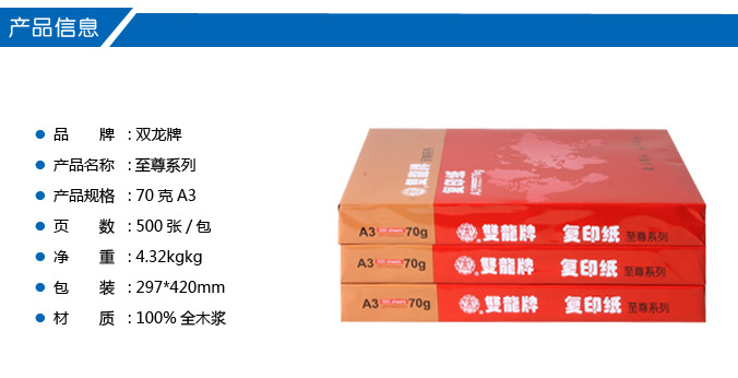 雙龍80克A3至尊系列復印紙